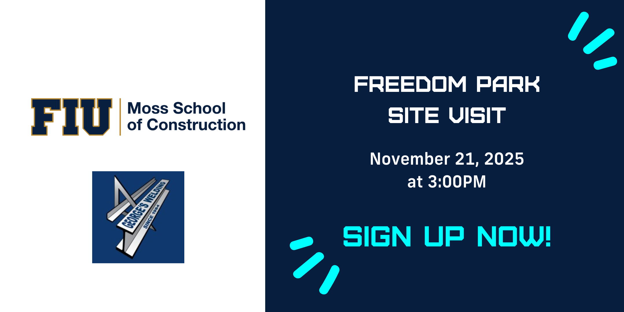 Join us for an exclusive tour of Miami Freedom Park on Friday, November 21, 2025, from 3:00-4:00pm. This is a great opportunity to see a live construction site, connect with professionals, and gain real-world insight.